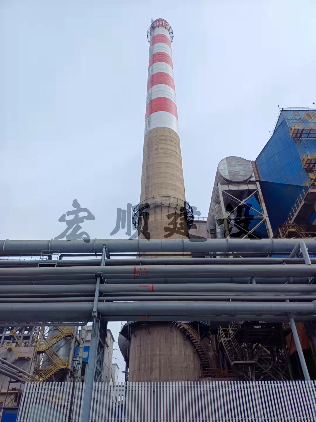 熱烈祝賀遼寧15根煙囪刷航標色環工程順利竣工